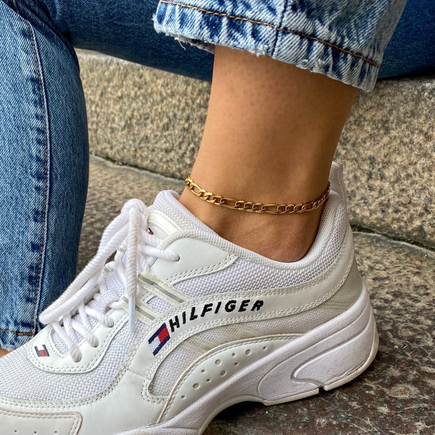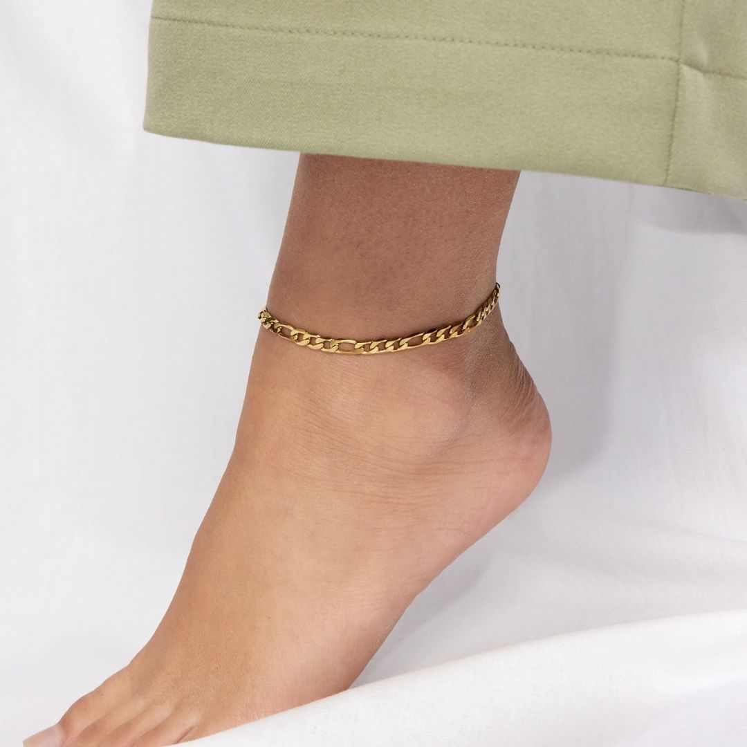 Figaro ankelkedja är otroligt enkel och elegant. Den piffar upp sommaroutfiten och ger en feminin touch till en enkel look. Den är ett måste i garderoben - Styla vristkedjan med flera i andra storlekar, som 3mm eller 7mm.